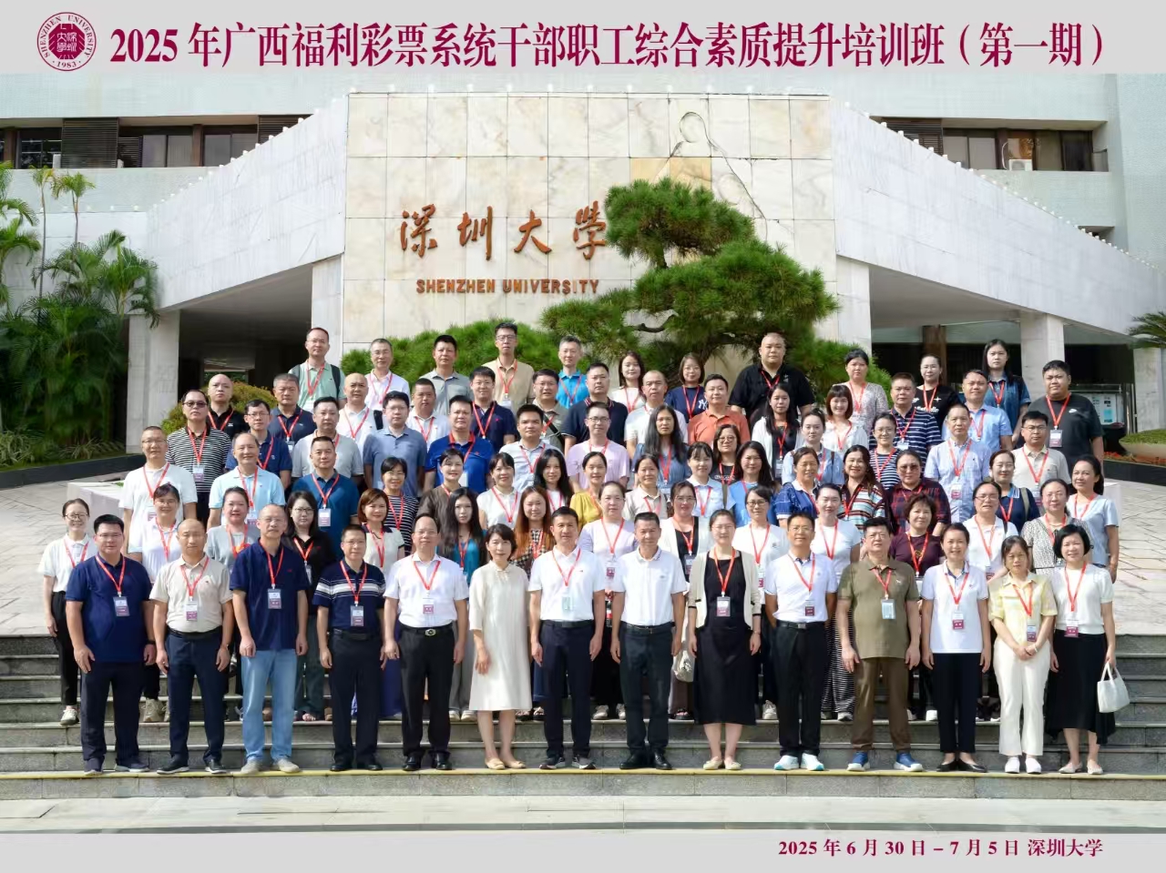 一、开班仪式2025年6月30日至7月5日,由广西福利彩票发行中心主办,深圳大学中国经济特区研究中心承办的2025年广西福利彩票系统干部职工综